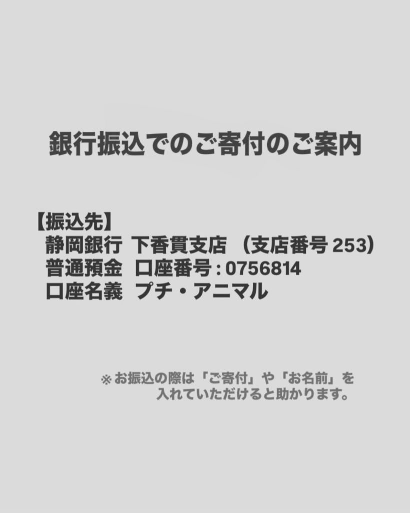 お振込みの際、「ご寄付」やお名前を入れていただけると