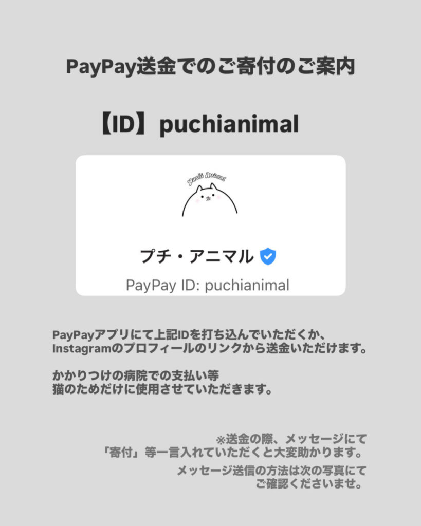 プチ・アニマルでは保護猫活動に「寄付による支援」「支援物を寄付」は常時受け付けています