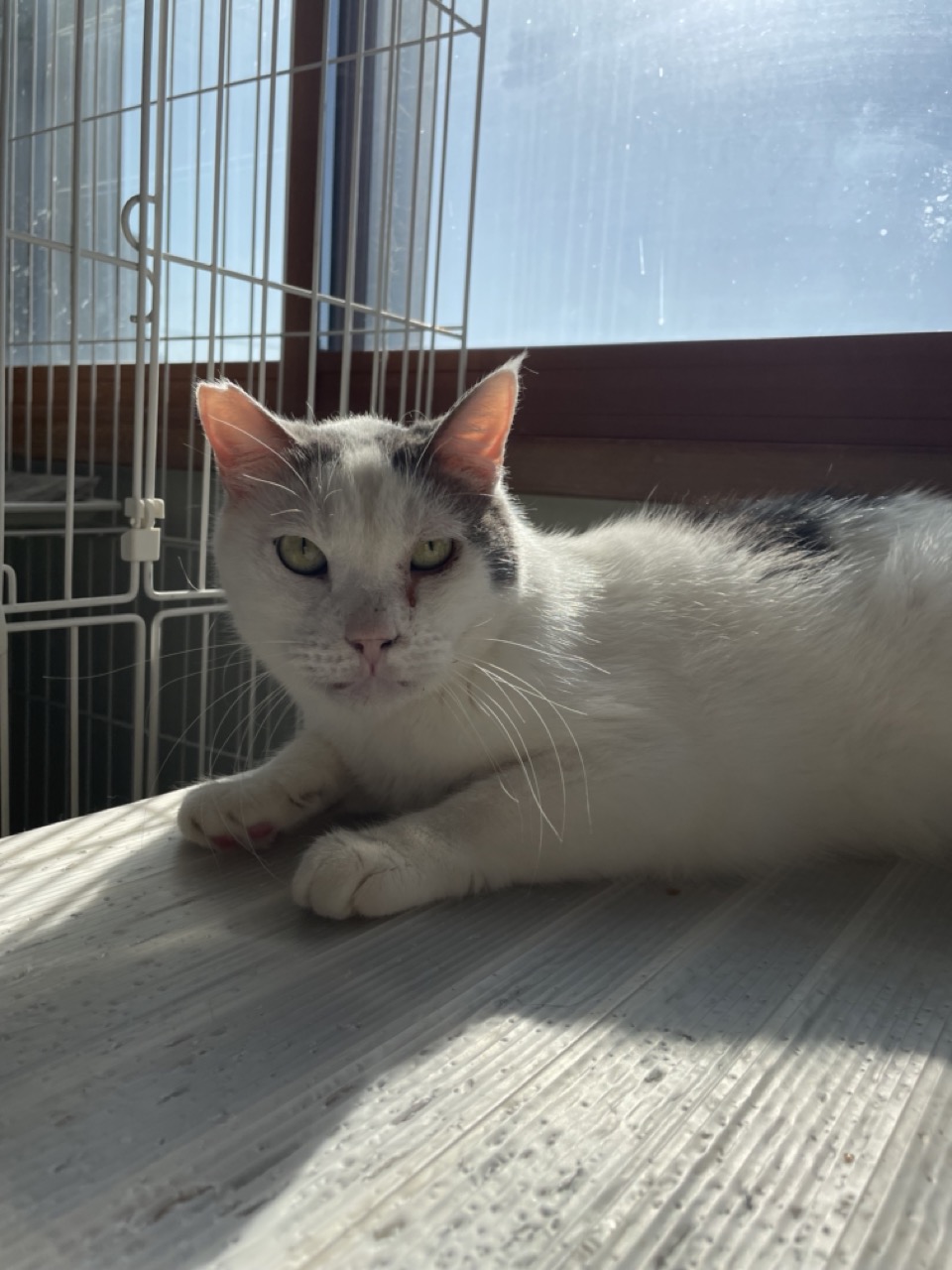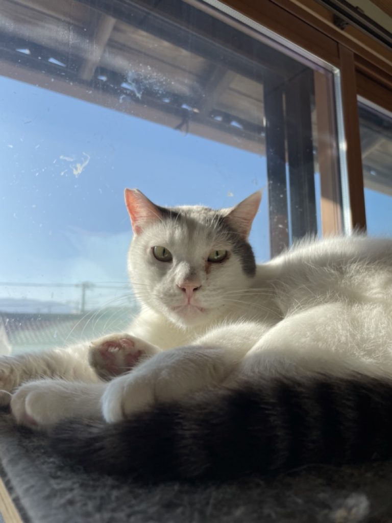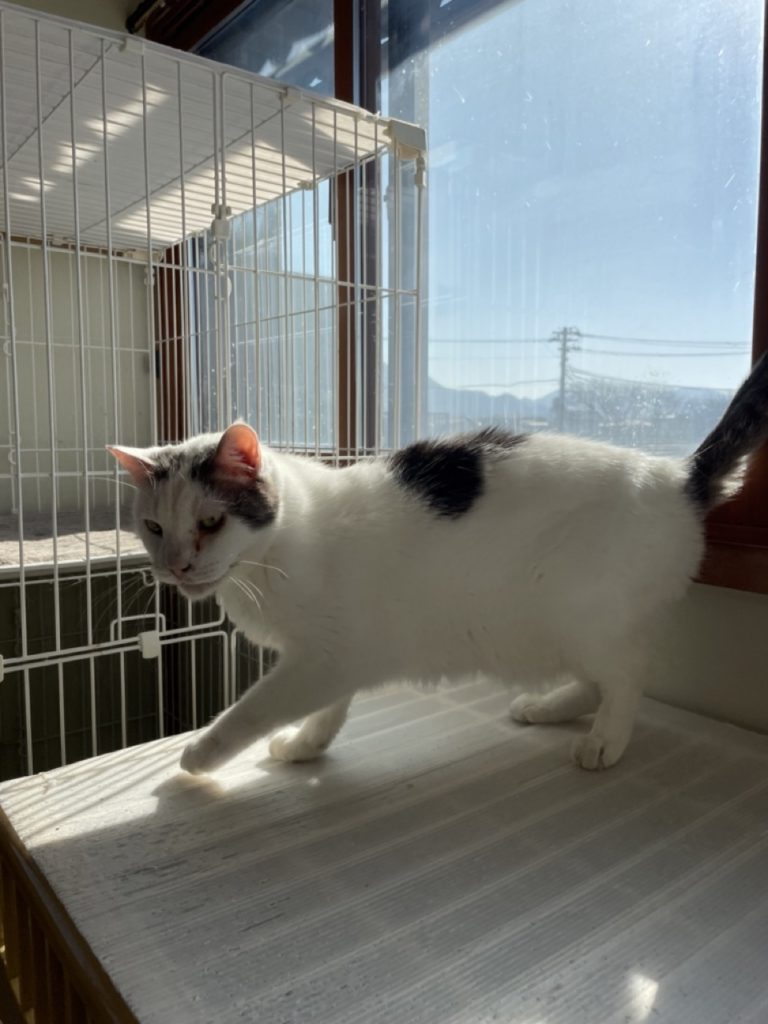 他の子とベタベタするよりは、自分で快適な場所を見つけて1人で日向ぼっこしたり外を眺めてることが多いシロくんです!