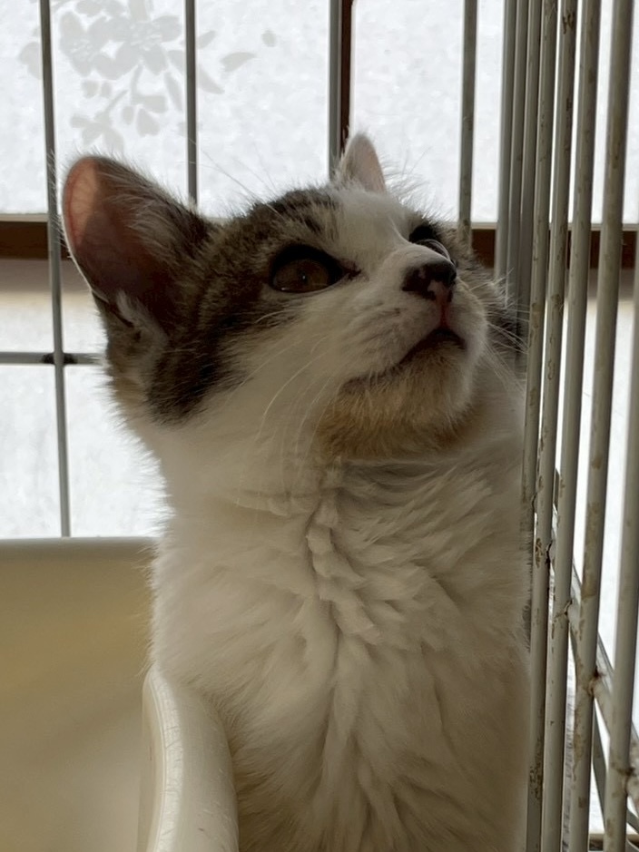 きゅるるんとした顔で見てくるのにまだまだ人馴れしてない松